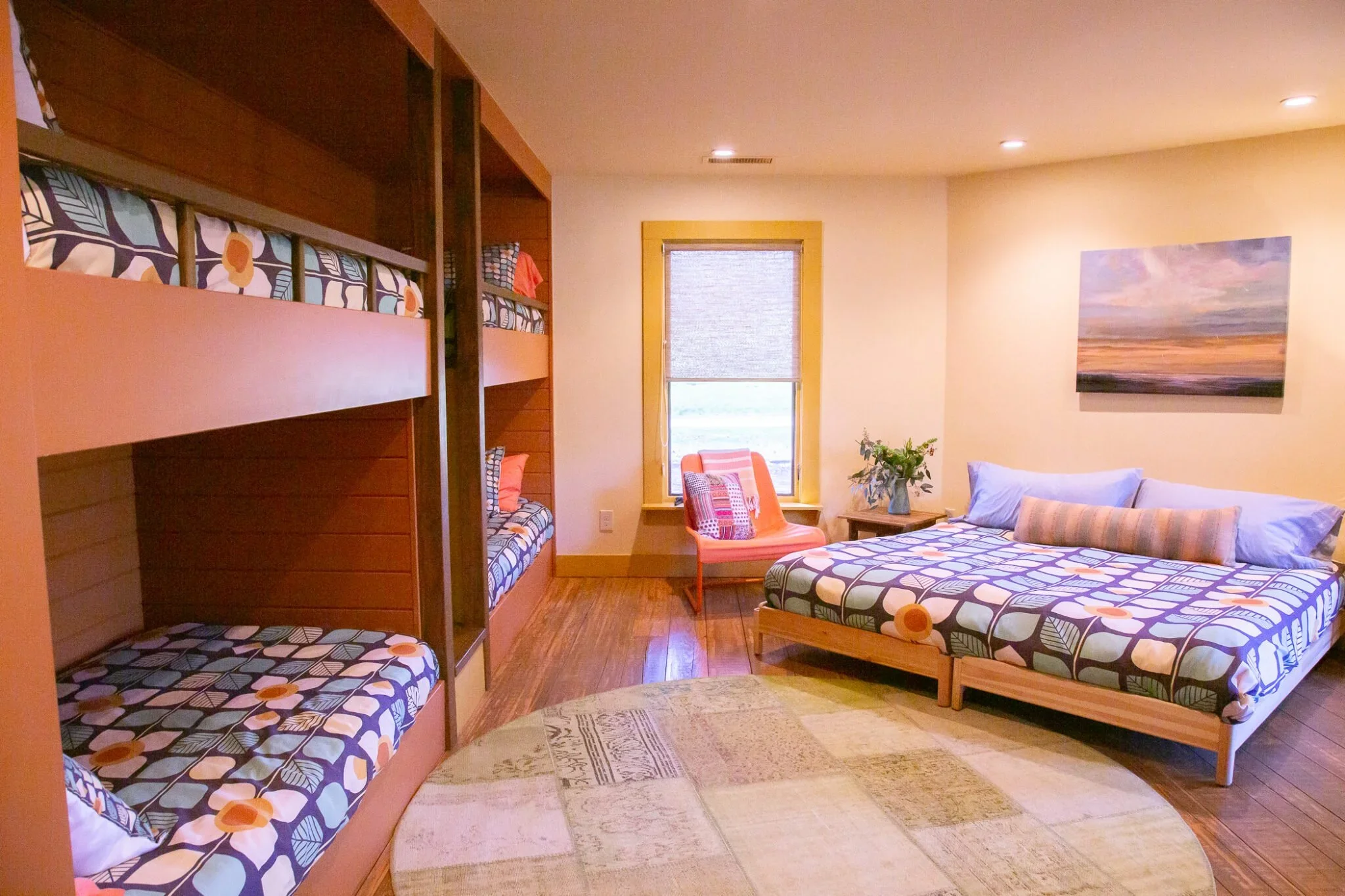 A restored 1912 Victorian home with four bedrooms, private or dedicated baths, and a shared outdoor hot tub.
